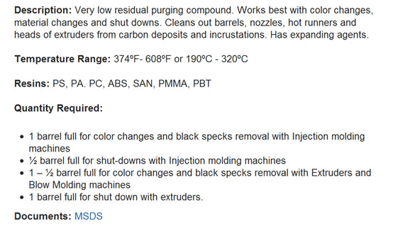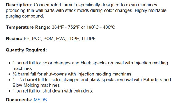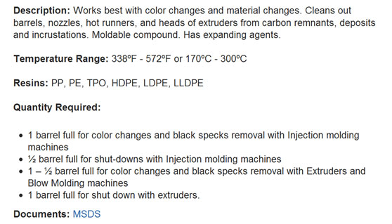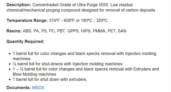 Purging Compounds for Injection Moulding Machine | Purging Compounds Suppliers in India | Purging Compounds Provider | Purging Compounds Manufacturers | Purging Compounds for Barrel Cleaning | Purging Compounds Grades | Injection Molding Equipment | Purging Compounds for Injection Molds | Chemical Purging Compounds | Mechanical Purging Compounds | Purging Compounds Distributor | Plastic Purging Compounds | Purging Compounds for Extrusion | Purging Compounds for Blow Moulding | Ultra Purge in India | Purging Agent | Plastic Cleaning Compounds | Plastic Processing Machinery | High E Grade | 5050 Grade | PO Grade